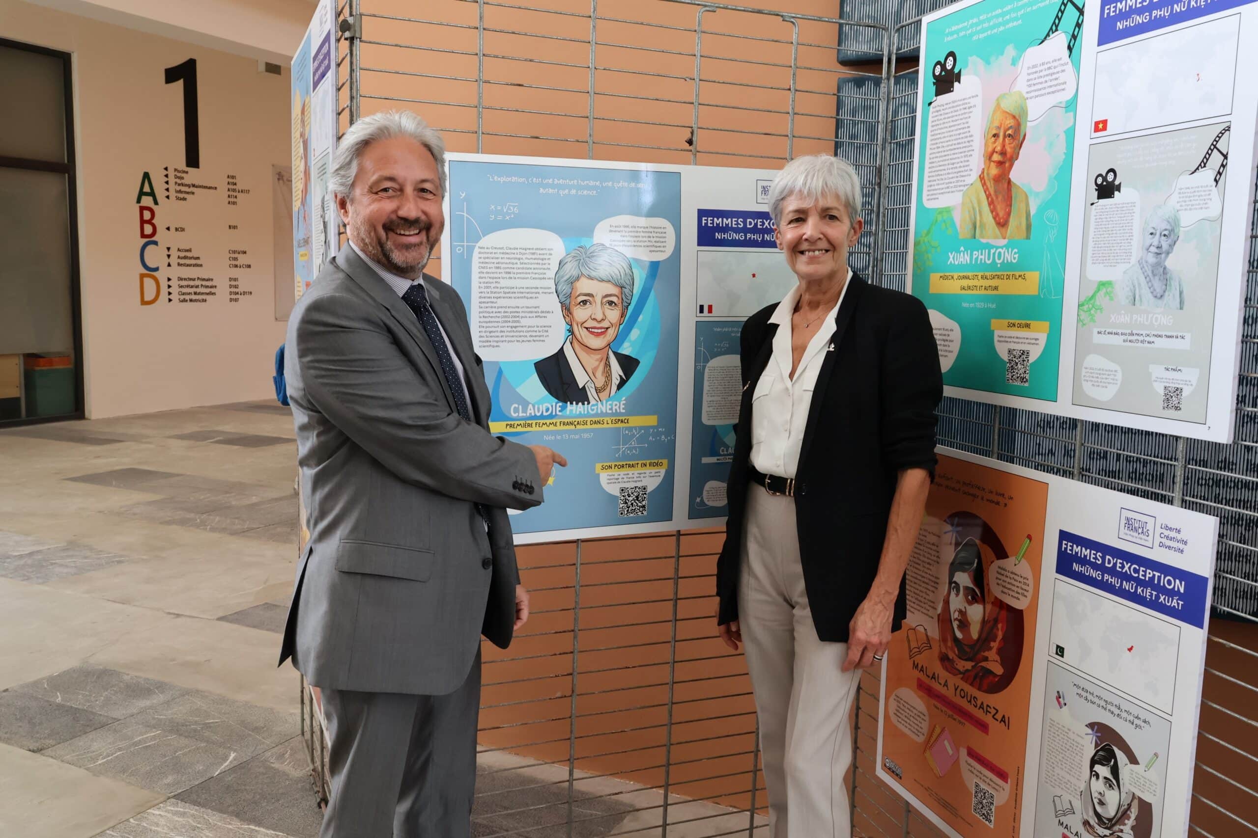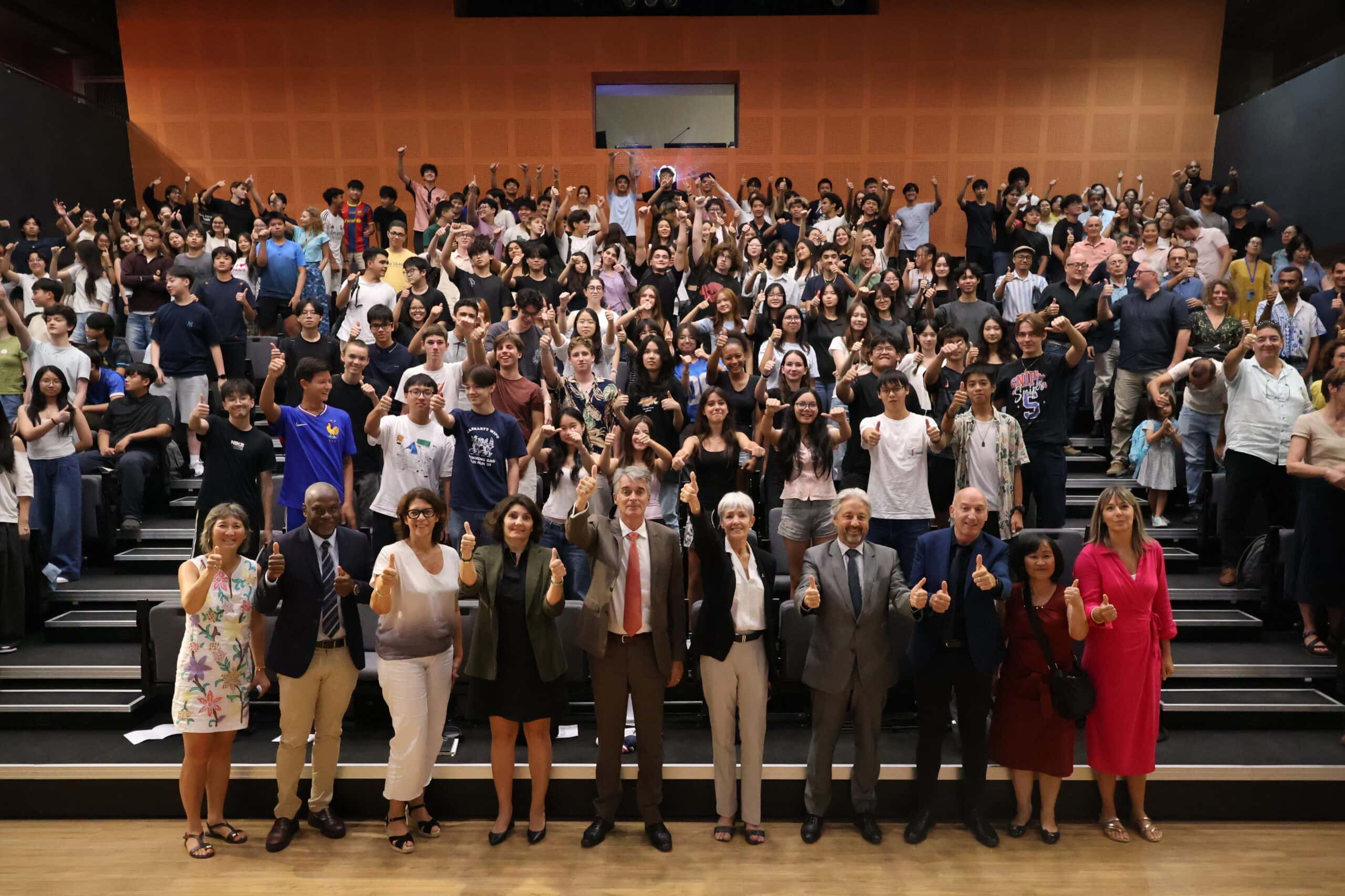 ✨ Aujourd’hui, le lycée français Alexandre Yersin a eu l’immense honneur d’accueillir Madame Claudie Haigneré, première Française dans l’espace, spationaute, scientifique et femme politique.