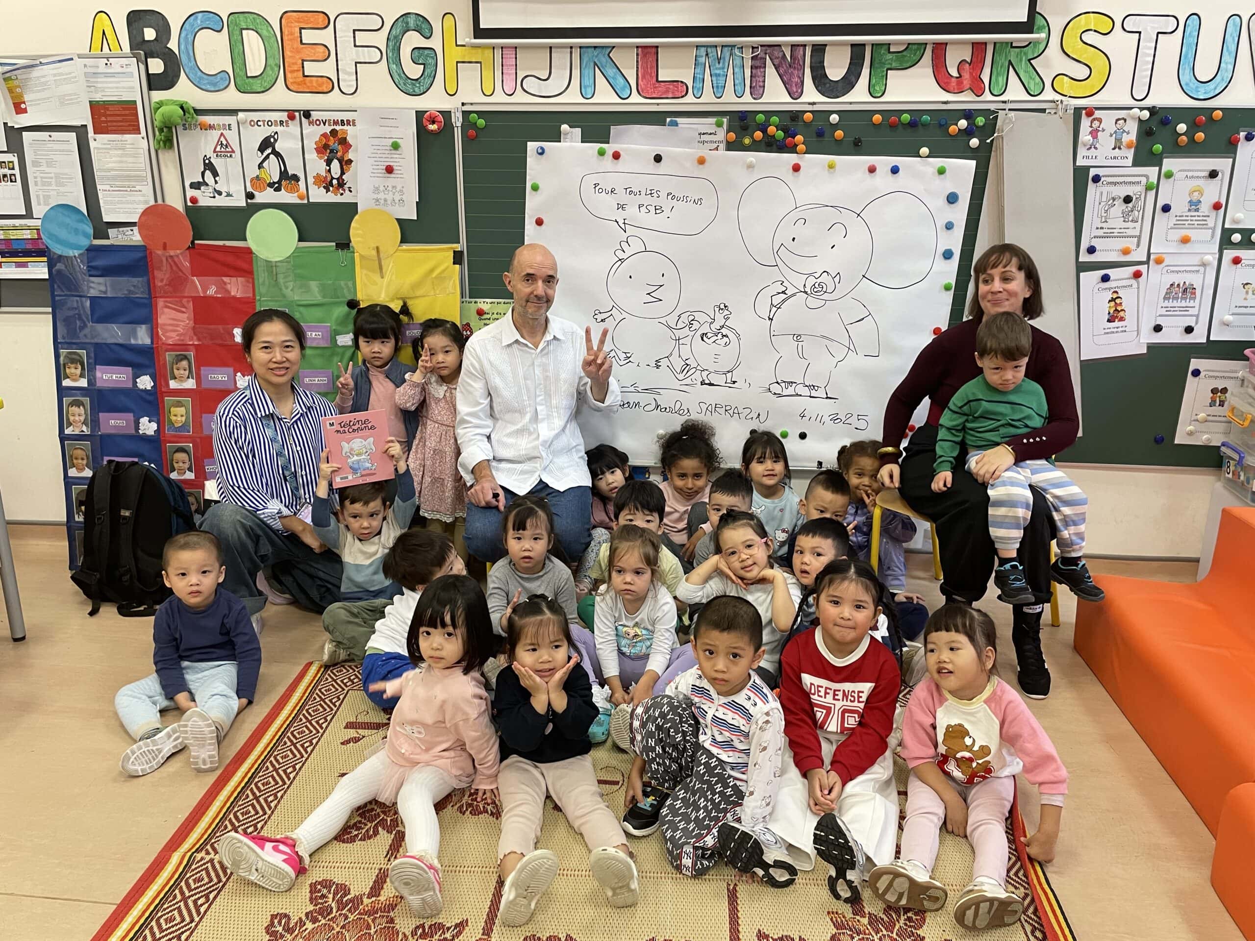 Jean-Charles Sarrazin, auteur-illustrateur jeunesse, a rencontré le mardi 5 novembre 2025 les élèves de 5 classes de maternelle du lycée.